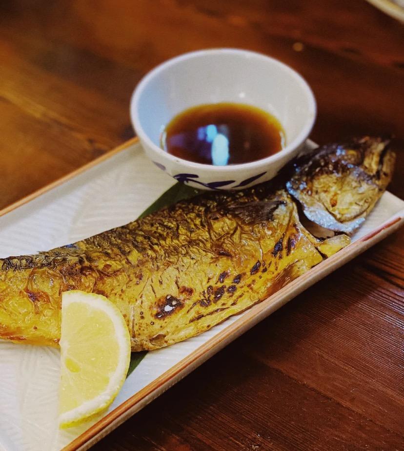 一份牛肉果沙拉、一份天妇罗、一份寿司一碗汤……简单的几样菜,配上一壶茶,足够我们慢慢吃慢慢聊。比较喜欢这家店的烤秋刀鱼,烤得恰到好处,淋上柠檬汁,综合了鱼的腥味,鱼的肉质也很嫩,吃好一盘后竟还有点意犹未尽。
