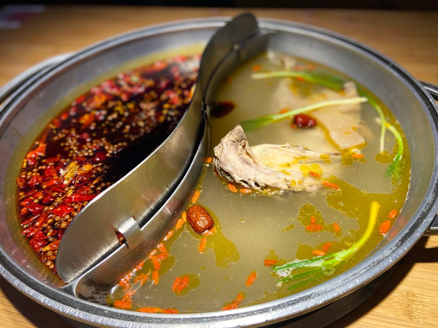 巡演之后,大家回到座位上,开始享用晚餐。熊猫老灶打的是正宗重庆火锅的招牌,从锅底到配菜都是地道的重庆味。锅底酸萝卜老鸭汤、养生板栗鸡、番茄牛尾锅等。虽是重庆火锅,餐厅也细心地准备了不辣锅底,毕竟有很多小朋友来此就餐。