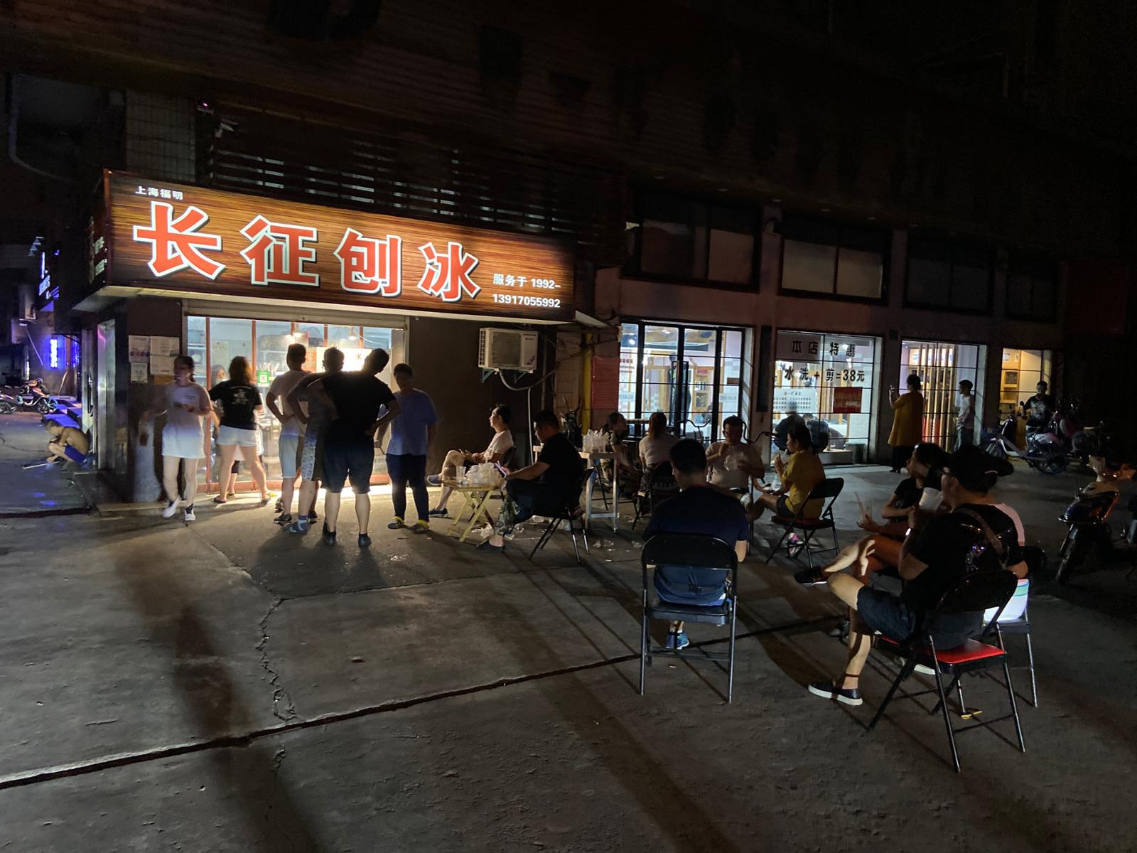 周五晚上8点,在杨浦区控江路内江路路口,一家长征刨冰店前排满了人。笔者了解到,有人专程驱车前来买刨冰。