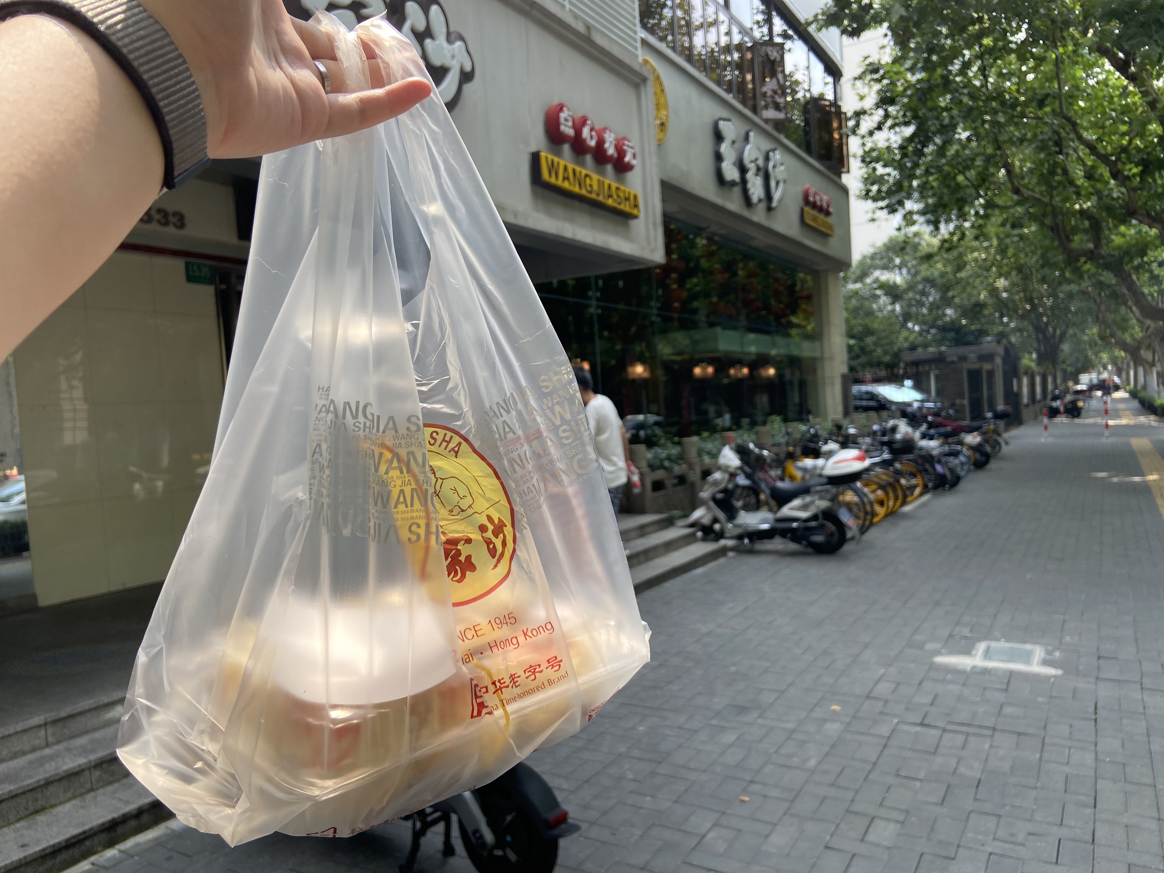 近日午后,路过北京西路上的王家沙点心店时,便想碰碰运气。如果不排队就买一盒王家沙招牌榨菜鲜肉月饼,回来和小伙伴们一起分享。果然人并不多,买了一盒,总共6个,花了30元。