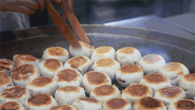 光明邨的鲜肉月饼是为数不多的两面煎的月饼,新鲜出炉的月饼酥皮层层分明,肉团喷香紧实。最外层的皮子烘得酥脆,里面则被肉汁浸润,软软糯糯,一口咬下去肉汁喷涌,油香肉滑,还带了点面粉的回甘,真的是烫了舌头也停不下来。