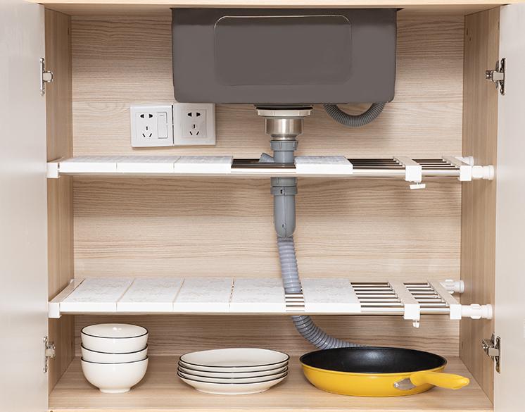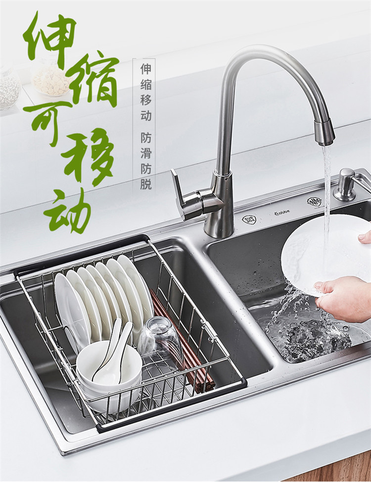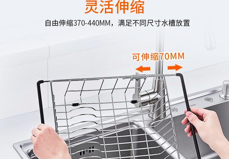 架放在厨房水池,使用起来非常顺手,虽然小却很能放东西。一些款式的长度和宽度都能伸缩,可以自由选择尺寸。不过,需要提醒的是,沥水篮下方的水槽容易形成卫生死角,要记得清理。