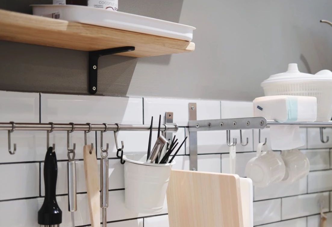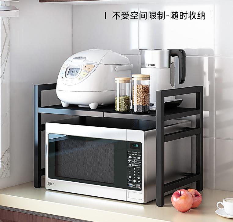 选择这种置物架的好处在于高度和宽度都可调节,也很适合对架子上方空间要求较高的家电。立体化的设计,将各种小家电们收纳于此,给旁边的操作台面腾出空间。