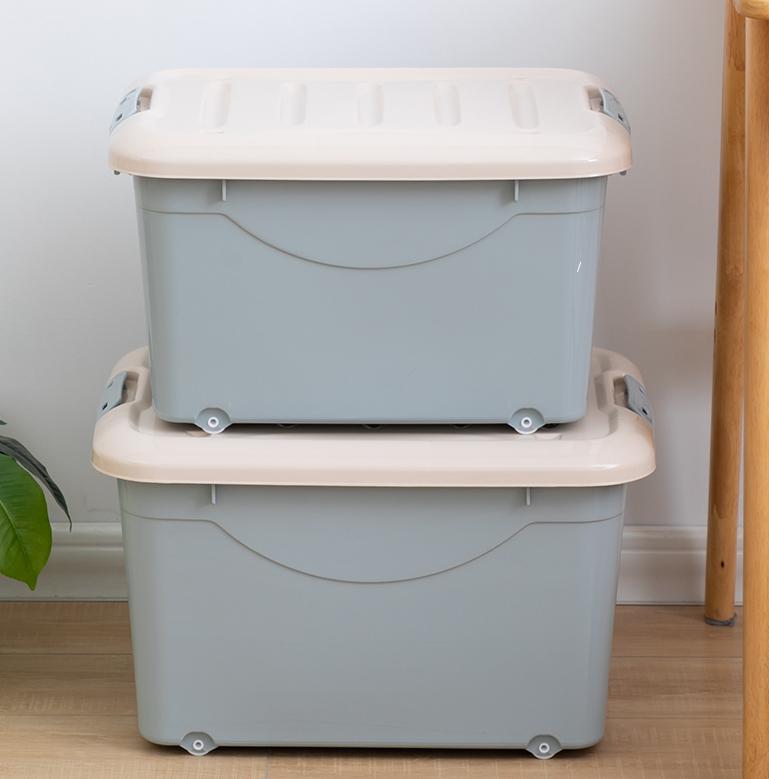 厨房的一些地柜,深度空间不太方便利用。好在有带滚轮的收纳箱,一定程度上解决了难题。选择个最大程度匹配柜子尺寸的,尽可能多地利用纵深空间,增加了存放收纳面积,也更方便取用物品。