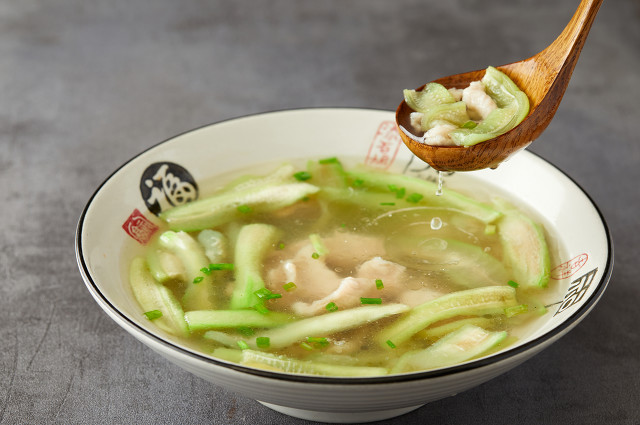 这里推荐一种特别的食材——白丝瓜给大家。它并不是转基因食品,是菜农们经过多年系统选育培养出来的地方品种。和普通丝瓜比起来,瓜汁更多,瓜肉更嫩,最重要的是还不腥。小火慢慢煲,自然煲出一碗浓郁的“够味”丝瓜汤,再加上虾皮和少许盐调味,清甜翻倍。