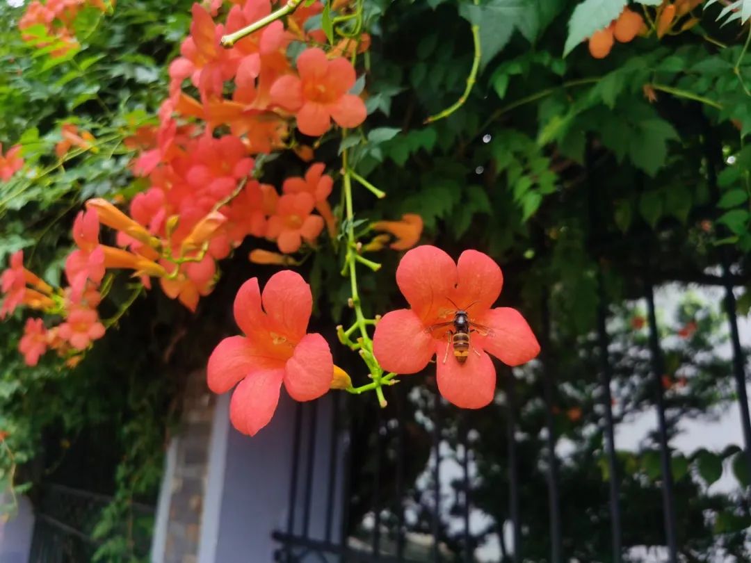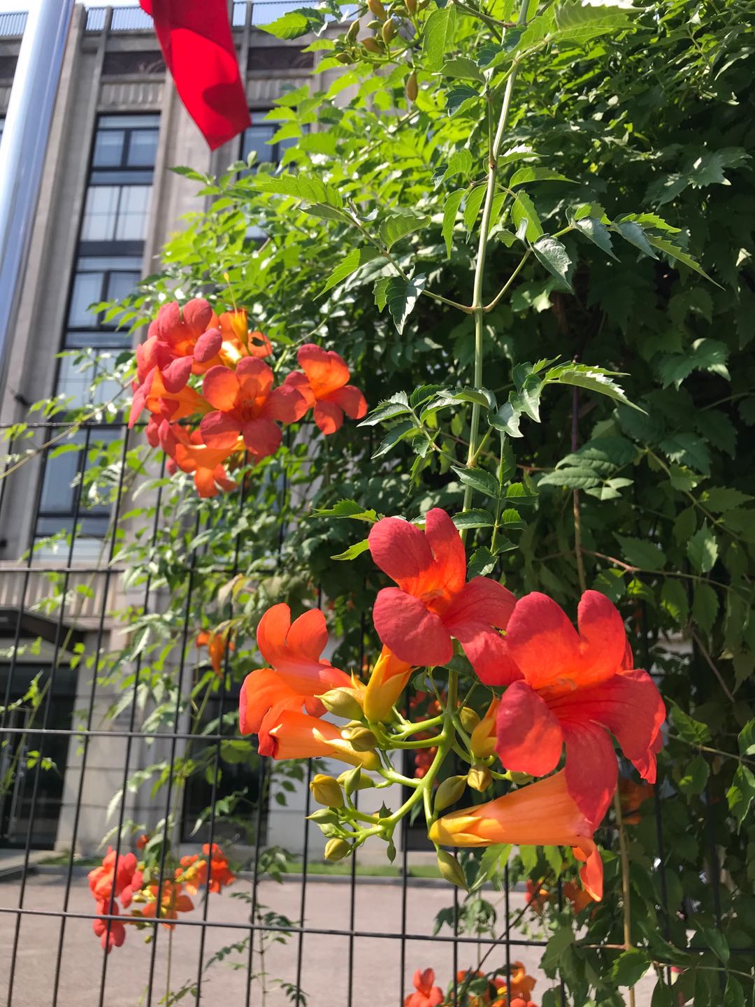 沪上随处可见凌霄花尽情释放着它生命的活力。据市绿化市容局消息,目前,申城许多公园内的凌霄花正娇艳盛放,有时在路边也能看见,一大片澄明夺目的红黄,在最高处欢笑摇曳。喜欢的市民不妨抓紧时间,到上海植物园、方塔园、顾村公园、光启公园、清涧公园等,寻访观赏它的芳泽。