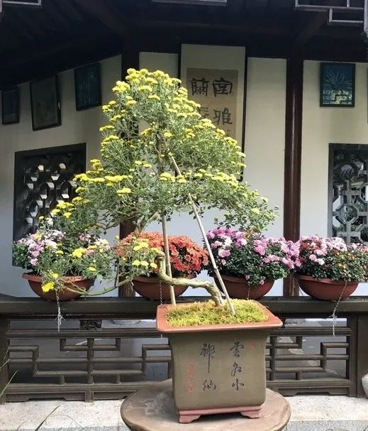 除了深受游客喜爱的各种品种菊,盆景菊展区也是人头攒动,形态各异的精致盆景菊彰显着匠人匠心。