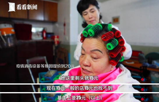 在李阿姨的理发店里,原先洗剪吹的价格是15元,很多年都没有涨价。今年受疫情影响,消毒成本上升才调整为20元一次。不过老客人都说,这几乎能算是徐汇区最便宜的理发店了。