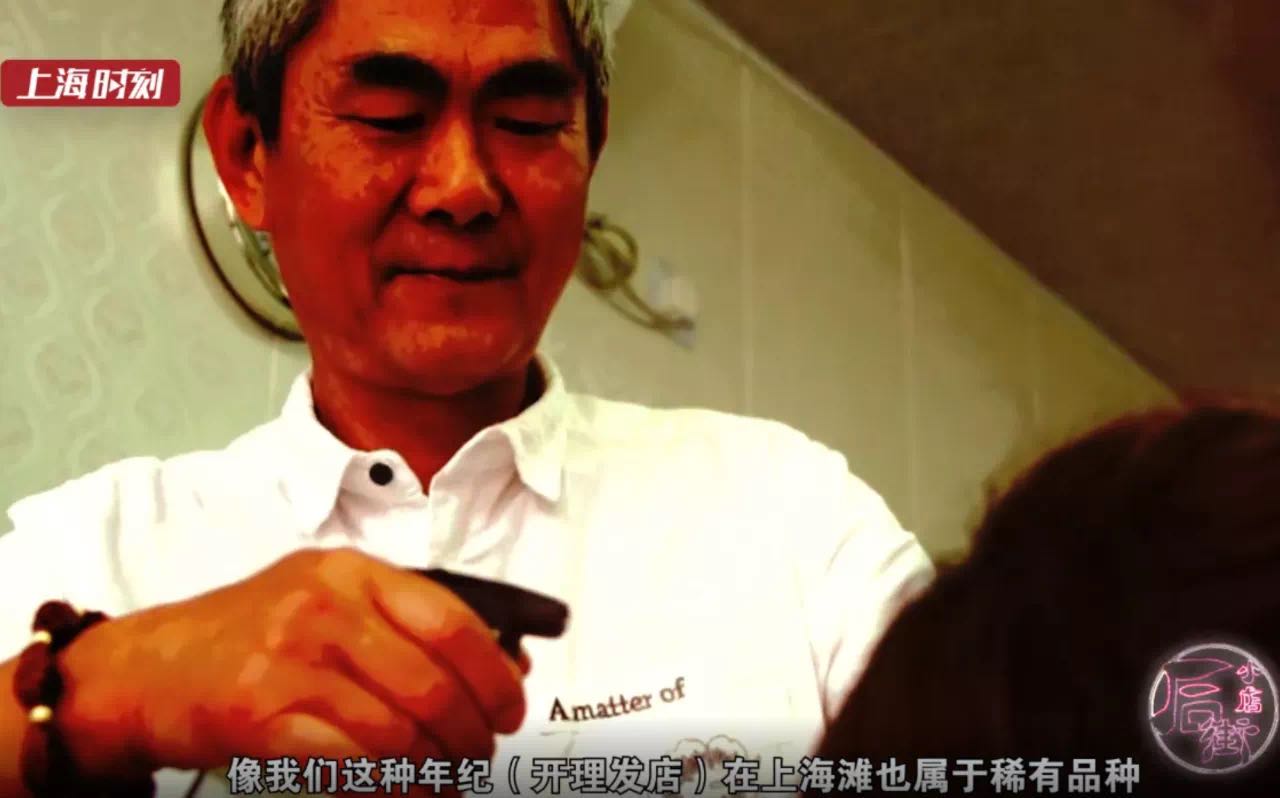 爷叔还自嘲,上海滩上花白了头发还在理发的,也是“稀有品种”了。