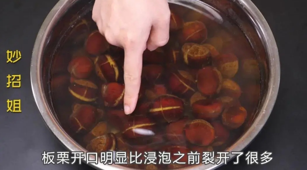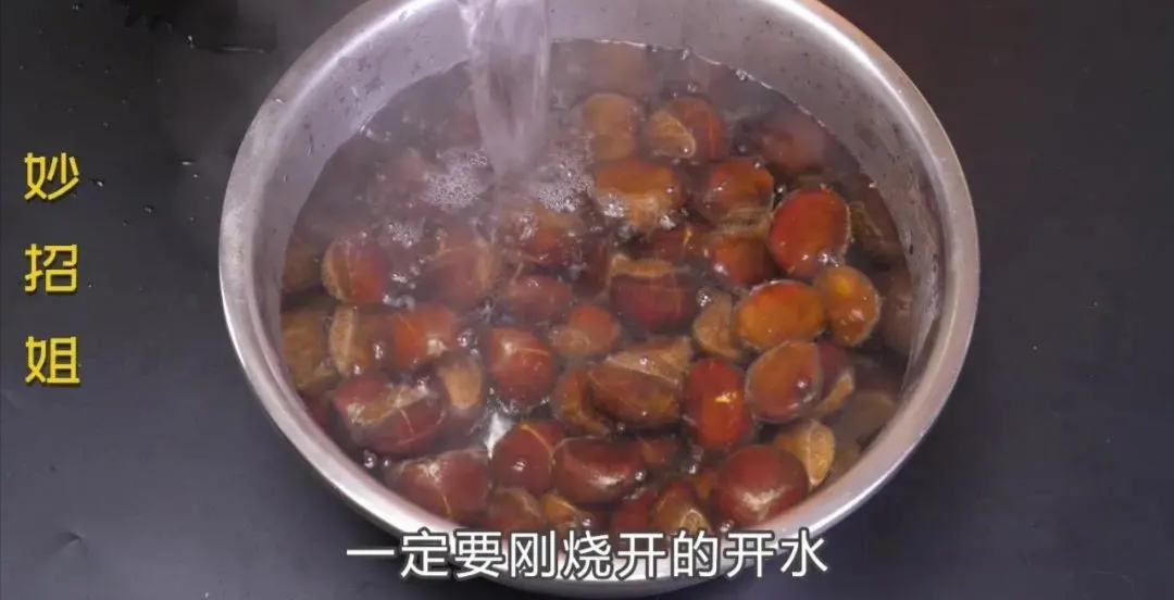 开水泡过的栗子外皮变软很多,非常轻松就剥下来了。同时,栗子里面的薄皮也会发胀,容易脱落,再也不用费力“抠”了。
