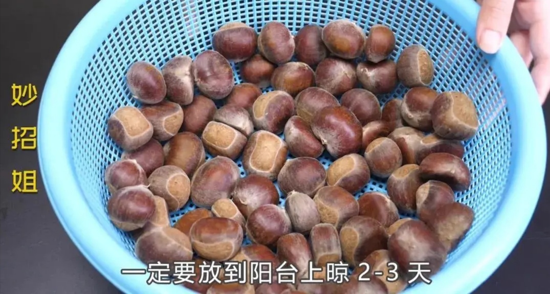 新鲜栗子买回来后,可以放到阳台上晾2-3天,待到果肉水分蒸发一部分后,栗子果肉与果皮之间就会产生一定的间隙,方便剥皮。