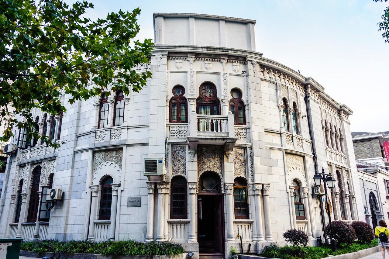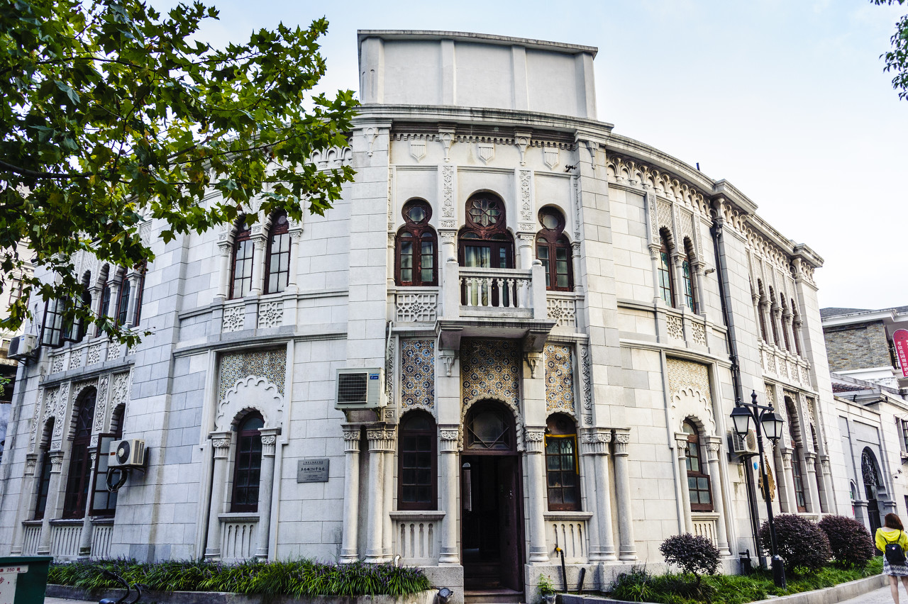 多伦路250号,被叫作“孔公馆”,曾住着四大家族中的孔样熙家。这是一座伊斯兰风格的建筑,有阿拉伯式的柱子和雕纹,彩色单元式构图是这座小楼的特色。