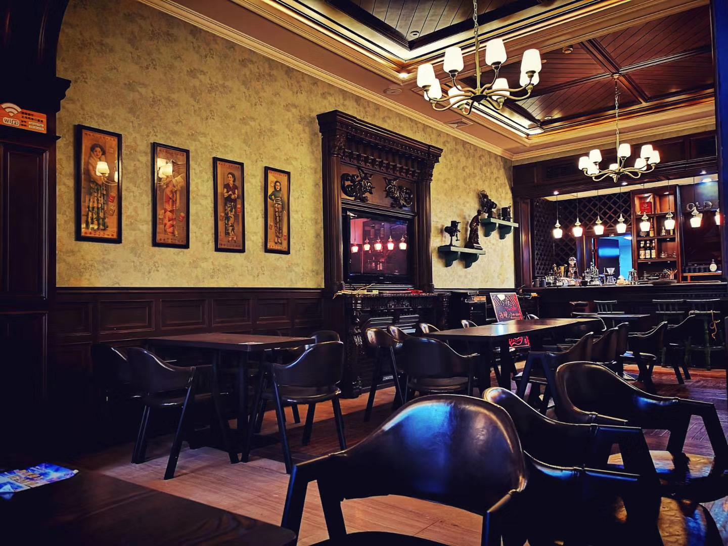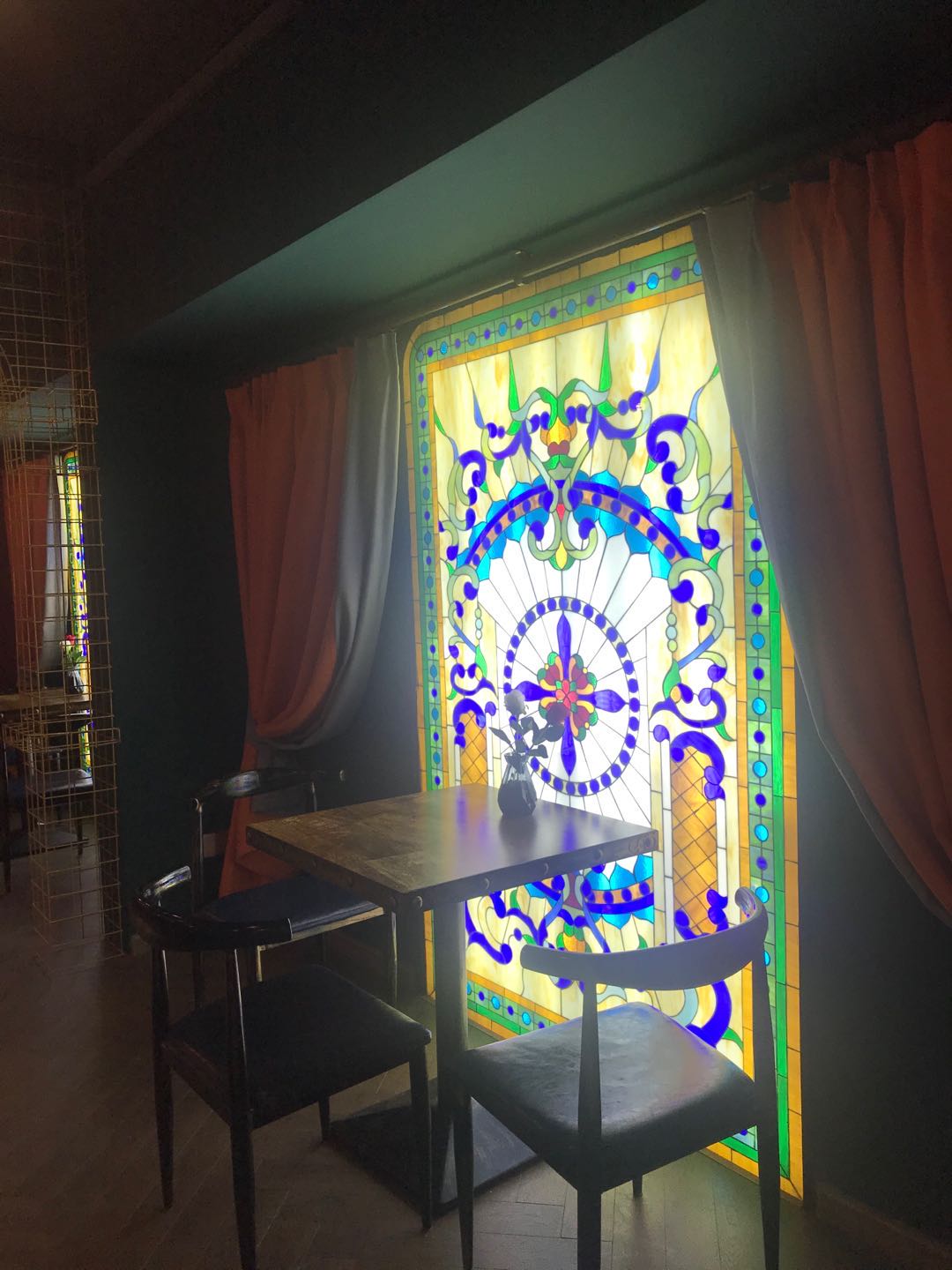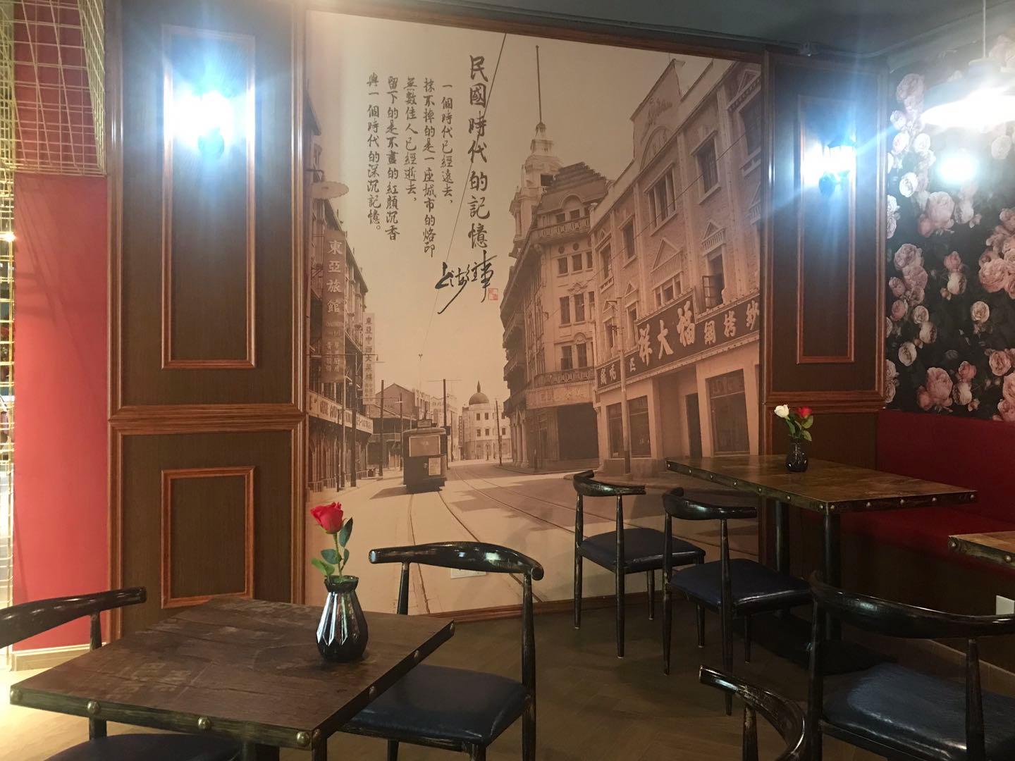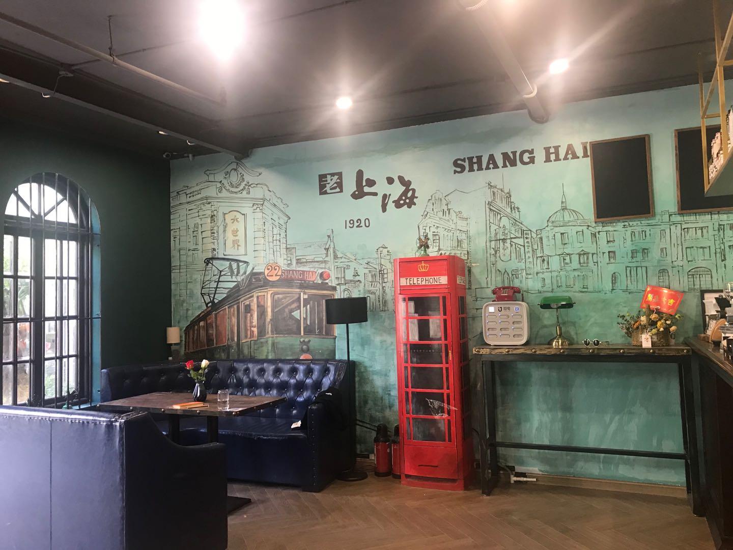 环顾着店内陈设,老的彩绘玻璃、墙画依然保留着,新设计增加的拱门和老物件,营造出上海石库门的感觉。背景墙上设计的画像,诉说着跟鲁迅先生的不解之缘。