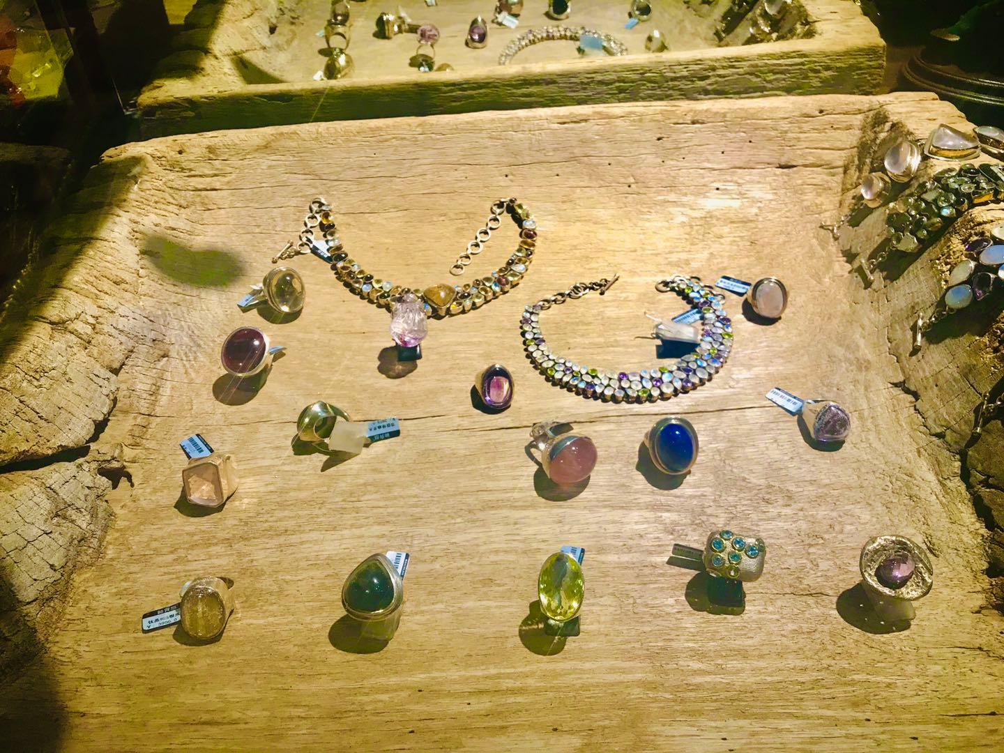 男士款粗犷大气,女士款精巧细致,每一件首饰都出自店主双手设计和打造,捶打雕琢、火焰喷薄中,一件件精美个性、独一无二的戒指、项链、手环、耳环、水晶饰品……熠熠生辉。