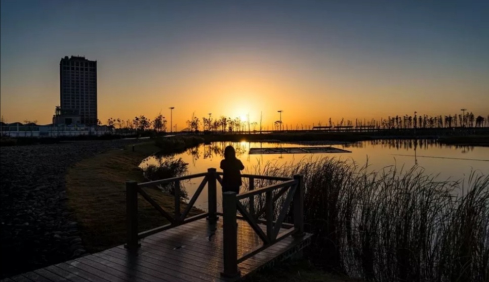 金山有一个别称——鹦鹉洲,这就是“鹦鹉洲”湿地名字的由来。另一方面,如果从高空俯瞰整个“鹦鹉洲”,其形状正好像一只尖嘴的鹦鹉。鹦鹉洲的日出特别美,与成片芦苇相映衬,碰撞出来无比剪影。