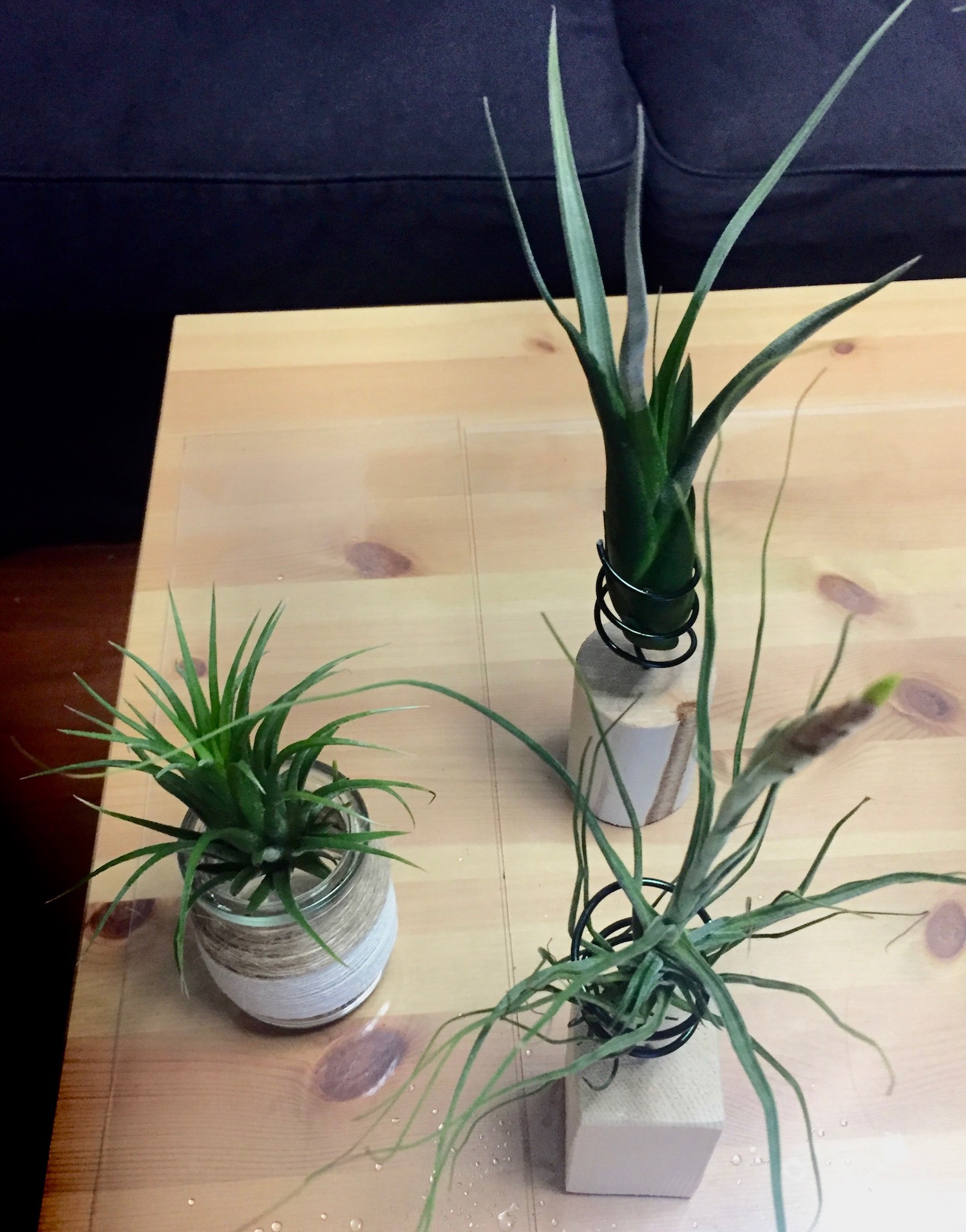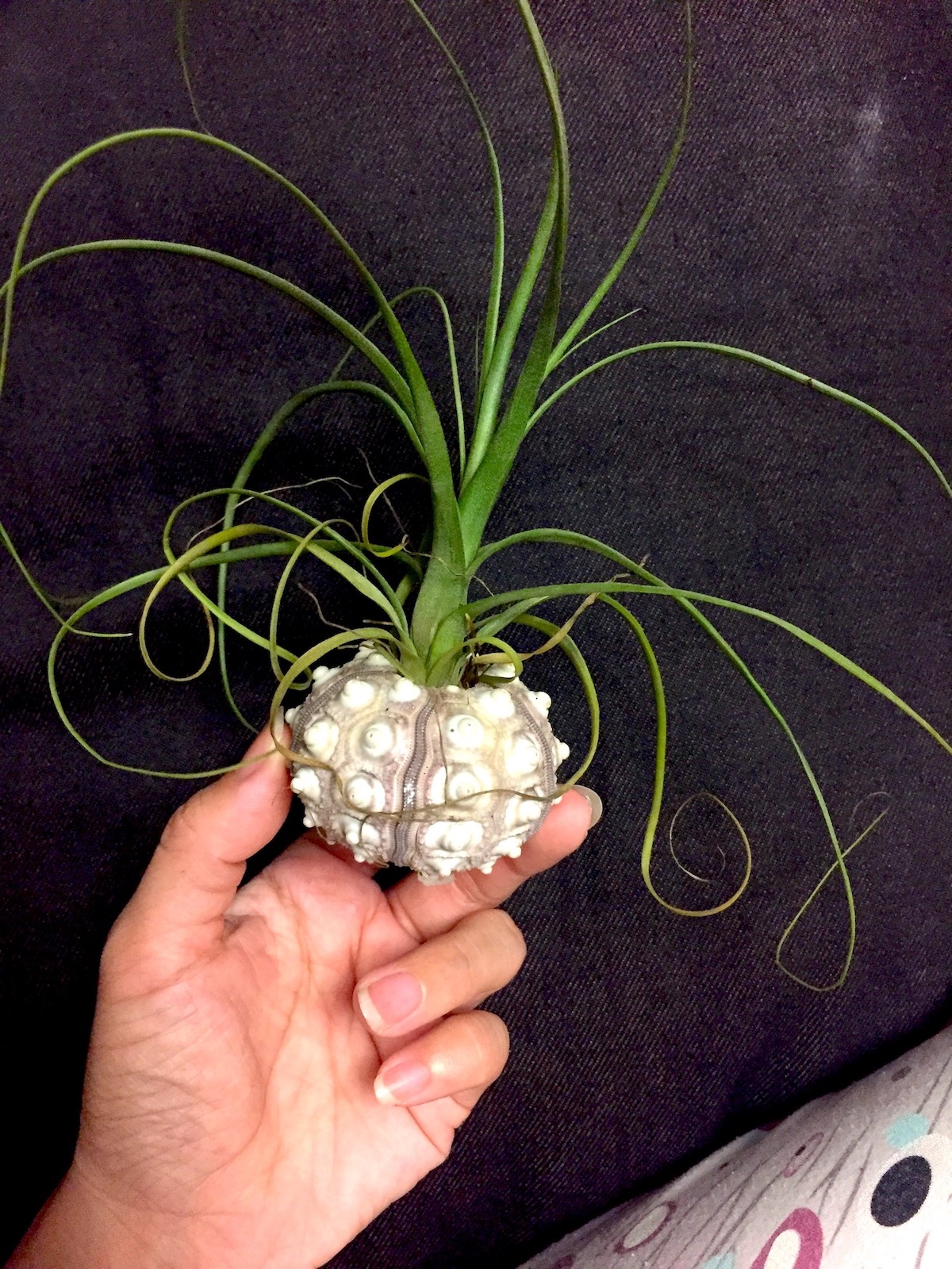 空凤,又叫空气草、气生菠萝,非常神奇,几乎是地球上唯一一种完全生于空气中的植物。无须土壤、水中种植,很干净,也不需要很频繁的打理,只要喷水就可以成长,叶面的绒毛吸收空气中的水气和氮化合物。