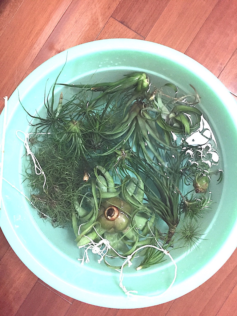 空气凤梨只需定期喷水养护,喷水频率要根据不同习性、季节以及天气干燥情况而定。喷水时喷至叶面全湿即可,也有比较速成的方法,就是将空凤泡水。