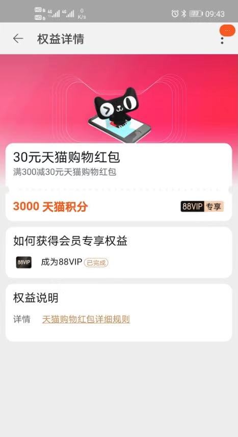 3、兑换红包需谨慎,满减才能用。比如,3000积分可以兑换天猫超市30元红包,但必须满300元才能用。以此类推,10000积分可兑换100元红包,满1000元才能用。(往年,兑换的红包可直接抵用)