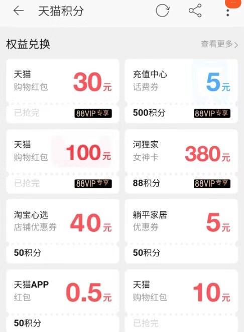 按理说,用积分直接兑换红包,最实惠。但是,大家不要高兴得太早,以前直接抵用的现金红包,现在要满减才能用呢,比如300-30、1000-100。原来,淘宝在这里等着你呢。