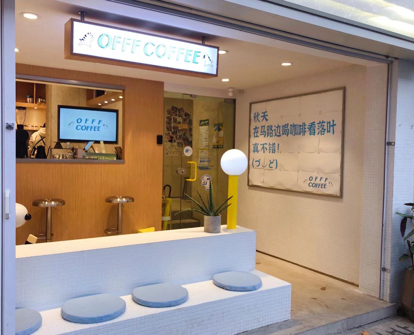 南昌路上的“网红咖啡”不少, OFFF COFFEE就是其中一家,方形的棕色橱窗与石凳很吸睛,右边的墙上还印有当季slogan“秋天,在马路边喝咖啡看落叶。”你可以坐在石凳上,喝着热腾腾的咖啡,欣赏着街边缓缓飘落的梧桐叶,感受这份温暖的小确幸。