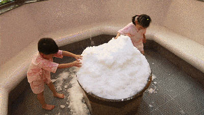 除了泡温泉外,极乐汤还准备了7种不同作用的岩盘浴房。每一种岩盘的介质不同,温度不相同,功效自然也不一样。在极乐汤中还有大人小孩都爱的“降雪屋”,难得降雪的魔都,没想到在这里就能看到不停下雪的场景,孩子们团雪球、堆雪人玩得不亦乐乎。