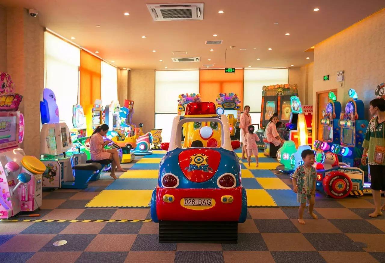 当然,这里更是一家三口的天堂,遛娃的父母泡完澡出来就可以带着孩子玩起来。儿童乐园分为两个区域:一个是软体攀爬海洋球游乐园,海洋球、滑滑梯……一个都不少,都是免费的。还有一个是投币电玩游乐区,这是需要收费的哦,1元1个游戏币。