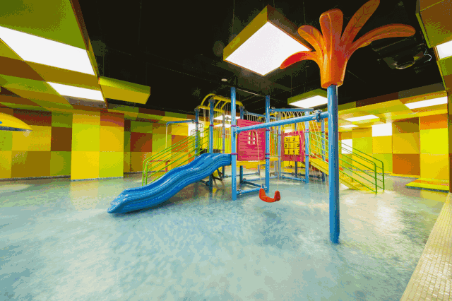 小朋友玩的也很多,超大面积水上乐园、彩虹冲浪滑梯、环形水幕……泳池边贴心设置休息位,方便家长照看宝贝。而且是恒温水池,掉下去也超舒服,就算已入冬也能快乐玩水!