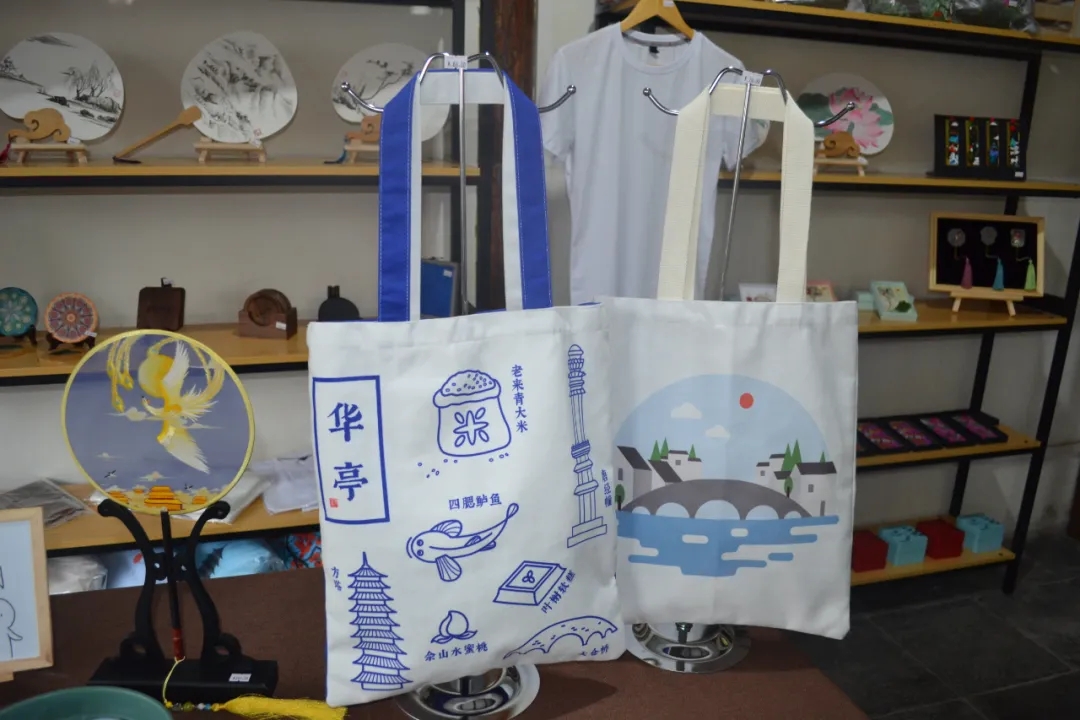 松江布不仅做出了各种美衣、玩偶,还与国潮品牌“飞跃”合作联名款帆布鞋;“松江最美的一座楼”杜氏雕花楼的陶瓷文创小巧精致;中国美术家协会会员、国家一级美术师张明教授参与设计的“五彩佘山丝巾”在第二届松江文创纪念品大赛中荣获一等奖……