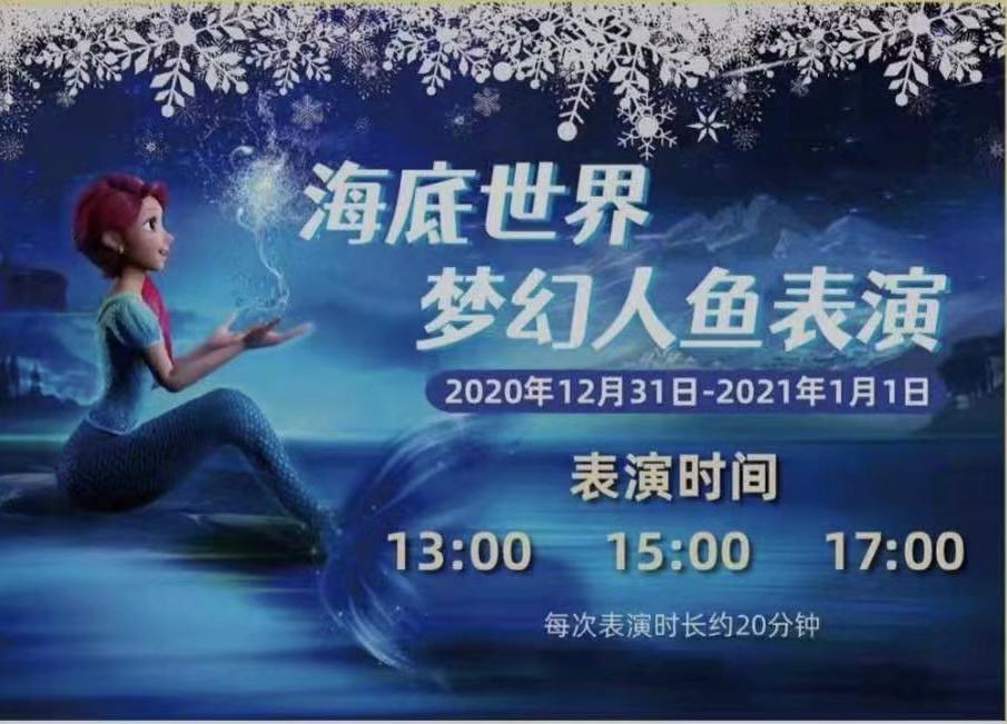 新世界一楼北中庭的海洋世界,跨年夜和元旦期间,每天都有美人鱼表演。12月31日,将呈现双人联袂的美人鱼表演,表演结束将拉出“恭贺新年”的条幅,为前来打卡的现场观众带来美好祝福。