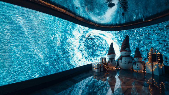 一进门就能看见这个超长的动画幕布,有一种身临其境的微妙感。不断变化不同的场景,十分具有艺术气息。