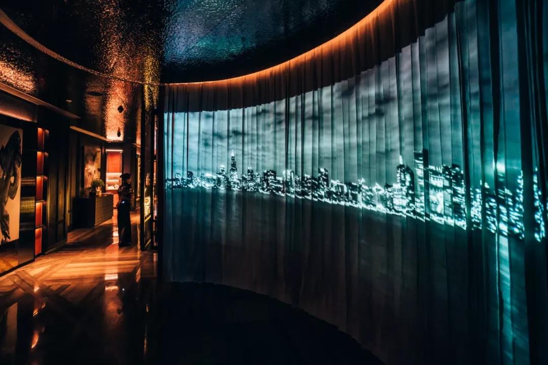 三楼的过道也有一个幕布,和楼下是同步的。这里更像是一种剪影在里面,反而有层次感。