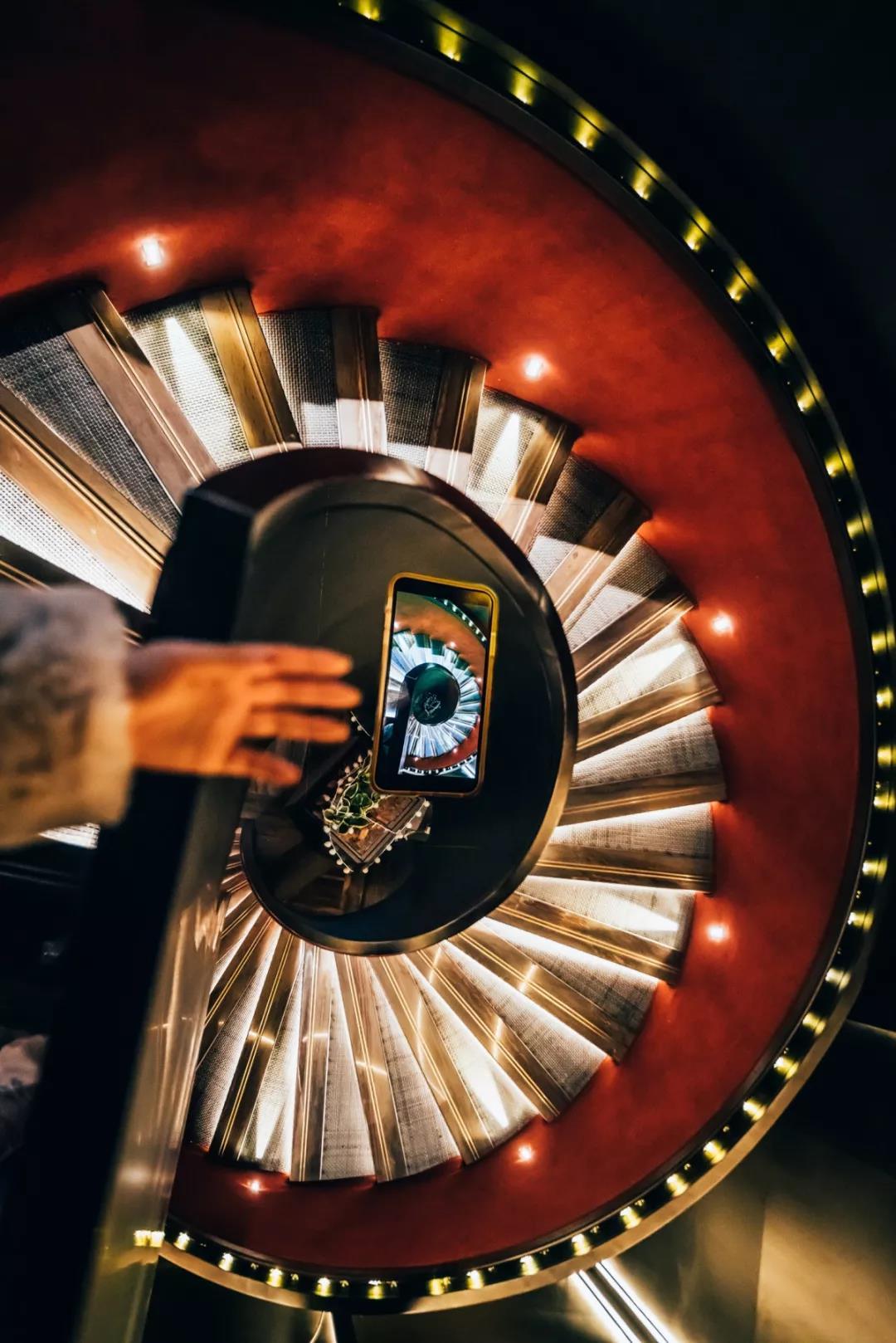 网红旋转楼梯,一层层走上去别有一种感觉,超级适合名媛来凹造型。