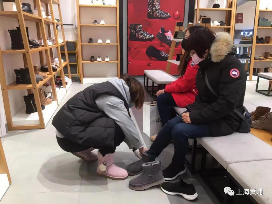 记者来到南京路新世界城,在UGG(专售羊毛靴)专柜,正在挑选商品的顾客络绎不绝。白领李小姐表示,冬天女生容易手脚冰冷,近两天寒潮这样的感觉更加明显,挑选一双温暖的靴子尤为重要。
