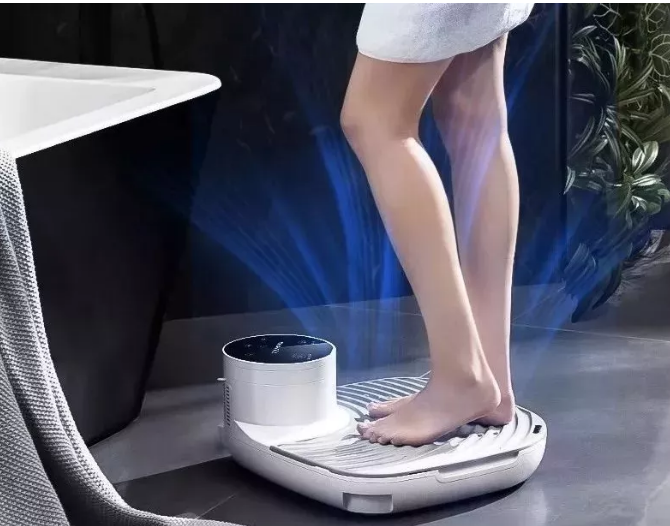 淋浴后,直接踩在负离子干身机上,暖风徐徐包裹身体。整个干身过程仅需2-3分钟,再加上有了负离子养护,吹完之后皮肤会比较光滑柔顺。