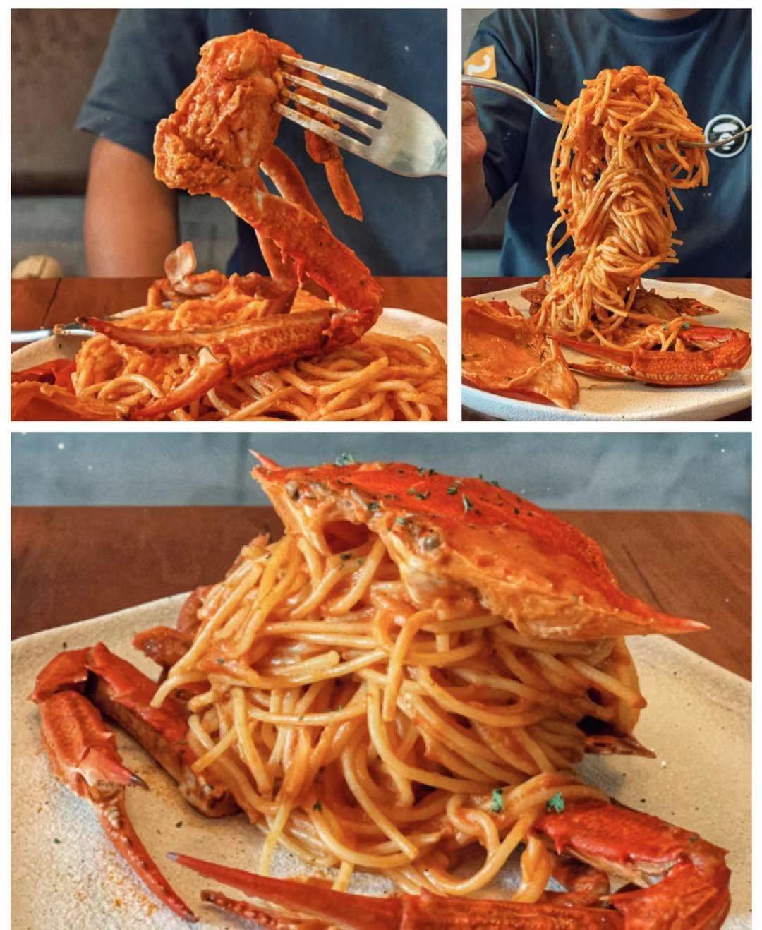 主厨是以前在古北很有名的一家叫Colab的意大利餐厅主厨的两个中国徒弟之一。食材品质都不错,跟外滩那些餐厅比起来丝毫不差。花蟹意面最招牌的一道菜,花蟹配意面倒是很少见,意面筋道有弹性,蟹肉的鲜融入到橙黄色的秘制酱汁中,真是满口留香。