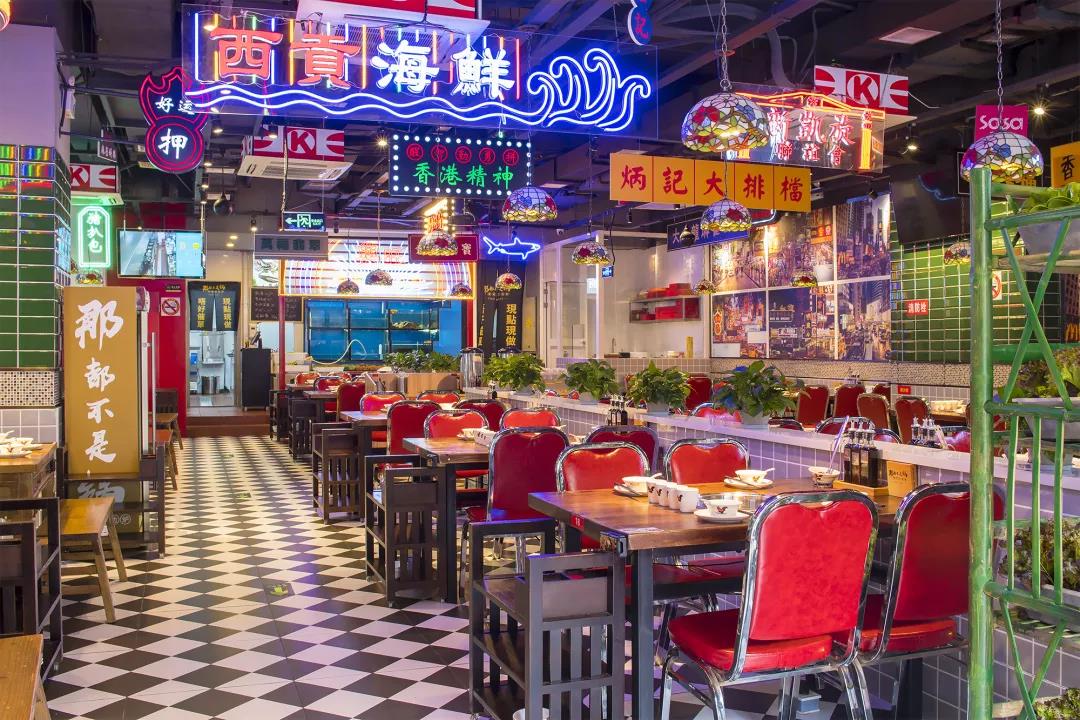 走进店内,一眼望去:彩灯结绳、红漆皮软椅、繁体大招牌挂牌、复古的温暖灯具,港式装潢古早风十足,很多网红小姐姐专门过来拍照。