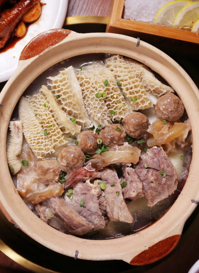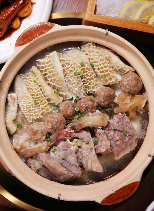 在朱雀,冬天必点秘制牛什煲,牛骨的鲜香和淡淡的药材气息直钻进鼻子里,金钱肚、牛筋、牛肉丸……满满一锅的料,分量感人!
