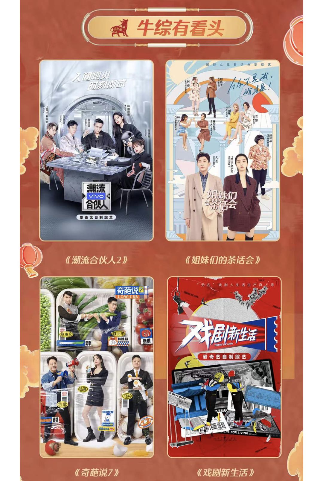 还有《潮流合伙人2》《姐妹们的茶话会》《奇葩说7》《戏剧新生活》等好看的综艺可以看哦~