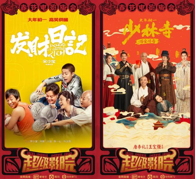 宋小宝的导演处女作《发财日记》和王宝强主演的新电影《少林寺之得宝传奇》已于大年初一上线爱奇艺平台,足不出户就能看最新电影。