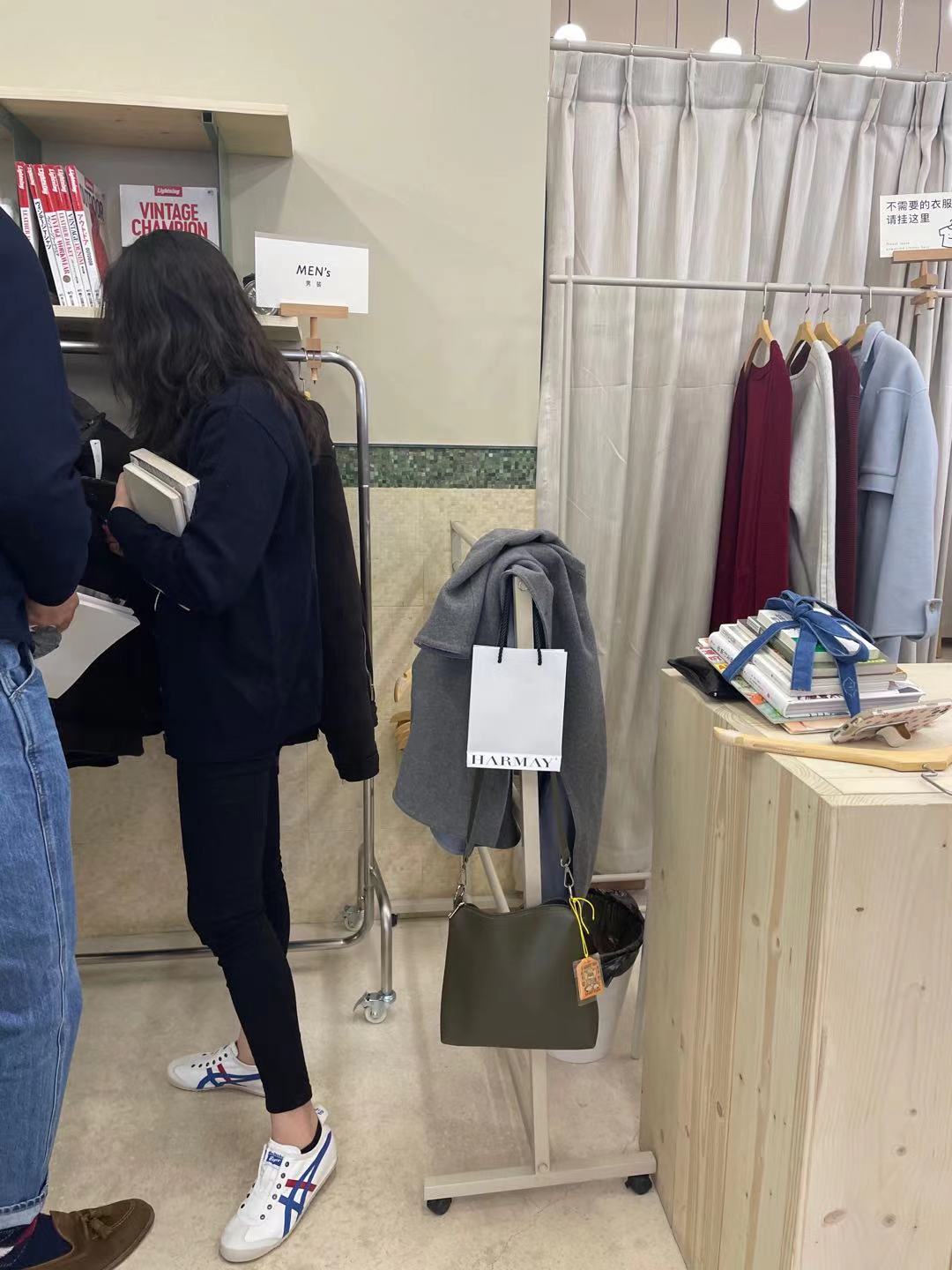 买完书来到三楼的服装区逛了下,一排排衣服都摆放得比较整齐,品牌也比较多,有常见的ZARA/Uniqlo/UR,也有一些设计师品牌,价格也都比较亲民。大家都知道每年地球上有大量的衣服被浪费,能够循环起来,重新发挥价值,还是一件很美好的事。
