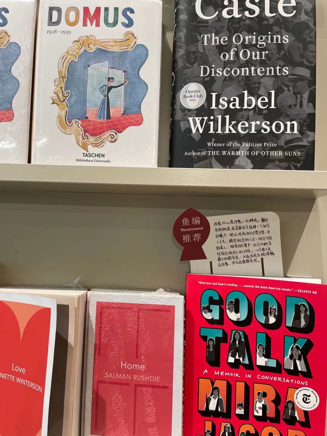 有些书旁边放着手写的“鱼编推荐”文字,很贴心。