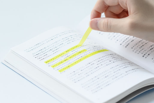 这种标记便签可替代记号笔,是半透明材质,颜色亮丽,贴在书本上十分醒目。