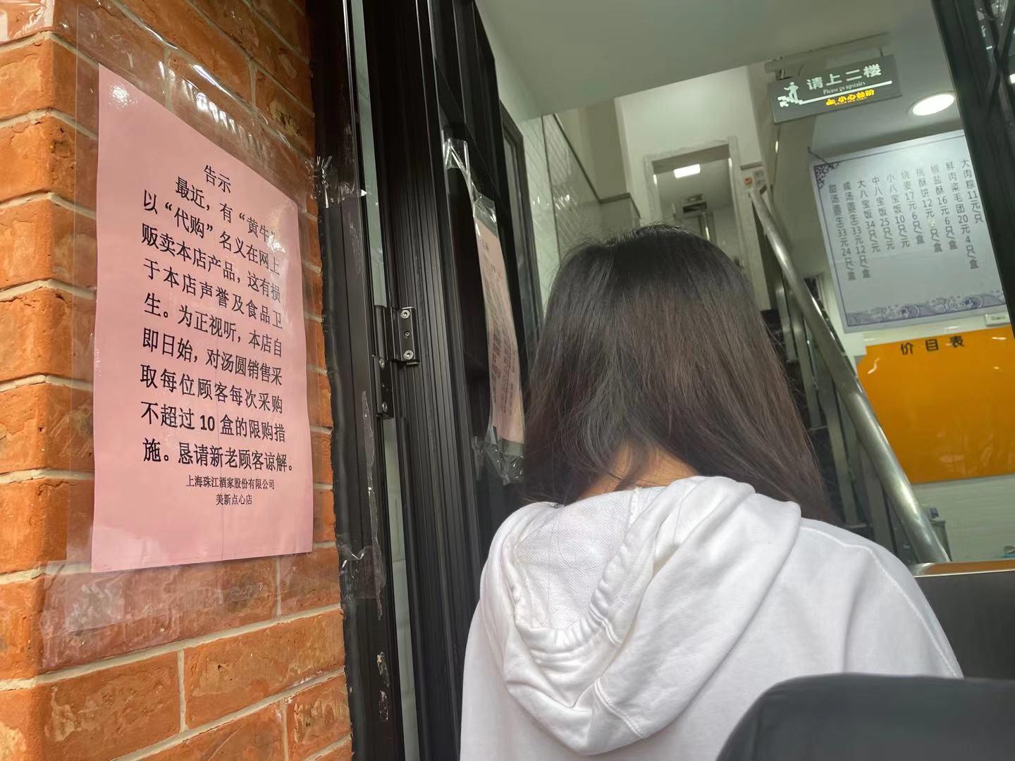 店门口贴着告示,每人限购10盒。笔者想,来都来了,这么多人排队买,味道肯定不错,自己也确实想尝尝,于是又来到左边的队尾接着排。