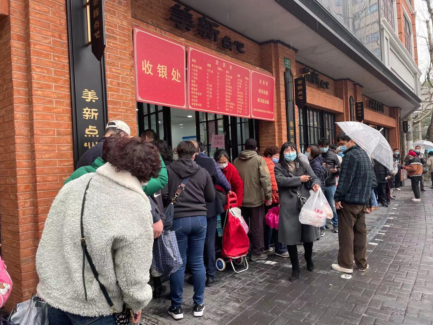 排在我后面的胡女士是安徽人,她说元宵节当天会有十几个朋友聚聚,有一个朋友点名要吃美新汤团,她就排队来买了,准备买四盒甜的,再买一份肉馅和一包糯米自己回家做。还有一位张小姐是个爽朗的山东人,她说来排一次队不容易,准备买够10盒,买回去分一些给朋友。也有一些像笔者这样的,看到这么多人排队想要尝尝鲜的。当然也有不少上海本地叔叔阿姨来买,都不高兴自己在家弄,还是到店里买方便。