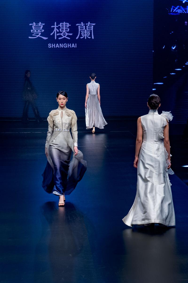 “蔓楼兰”一直以“让旗袍重新进入日常生活”为愿景,本次发布会在絮风柳燕之境中拉开序幕,带给大家柔和治愈之感;“瀚艺”的发布会以手绣手绘工艺为特色,倡导工匠精神,让极致的中国传统工艺走向世界;“曾凤飞”的发布主题为“溯源”,以少数民族文化等元素为基础,用当代设计延续东方文化与艺术之美。
