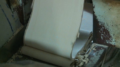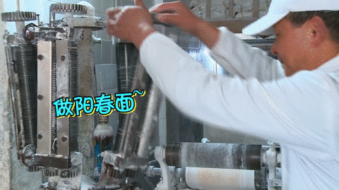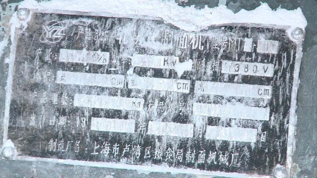 这台机器上一圈有5把不同的刀,不同的刀切出来的面条粗细也不同,做什么面就用什么刀,看到这块牌子,就知道这台切面机年纪有多大了吧!