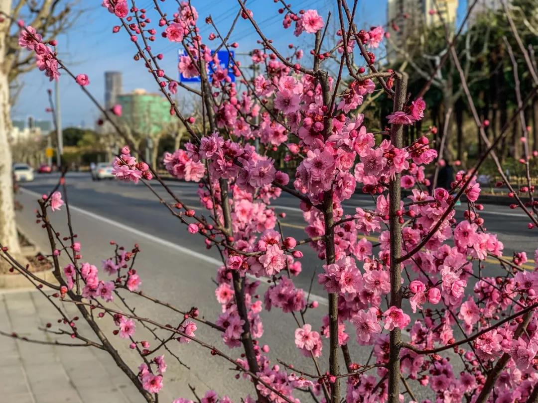 普陀的街头也到处蕴含着蓬勃生机,花儿们争芳斗艳一展风姿。作为上海市绿化特色道路之一的金鼎路,道路两旁栽种的花树已纷纷换上了粉色的衣裳,点满枝头,仿佛是琴弦上跳动的音符,奏响春天优美的旋律。