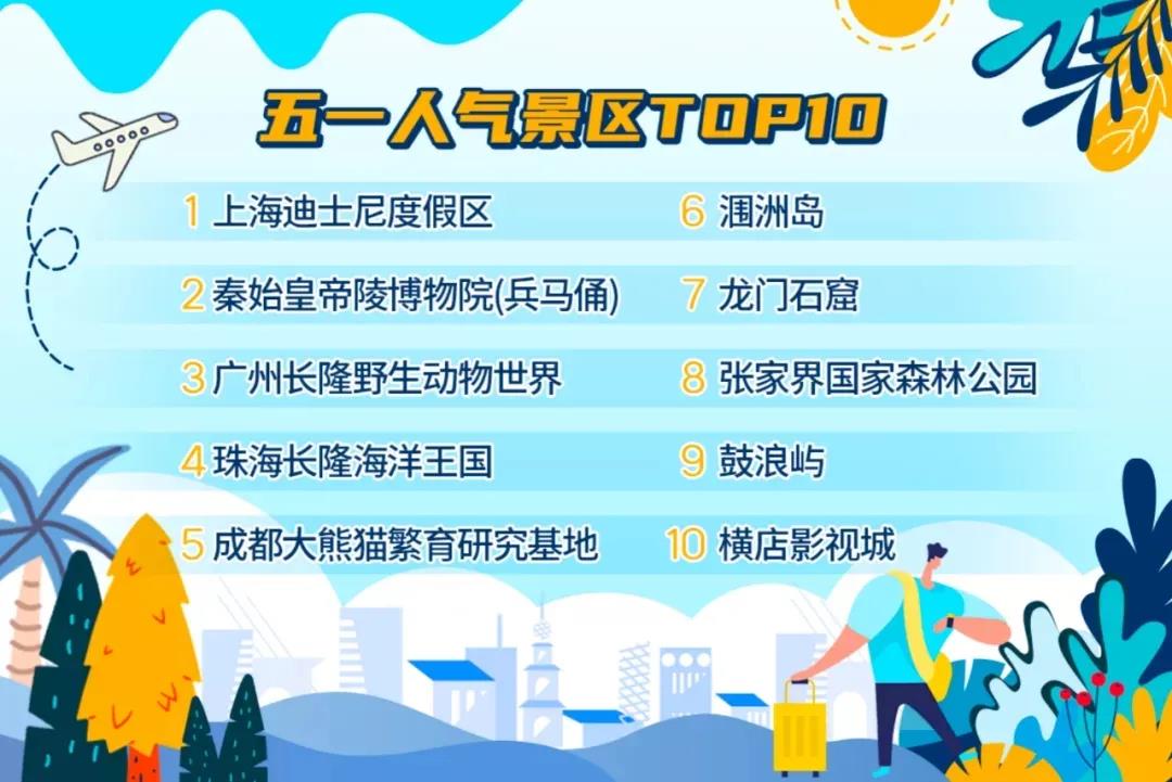 主题乐园、动植物园、博物馆、展览馆、建筑人文是五一假期最热门的几大景区类型。数据显示,上海迪士尼度假区、秦始皇帝陵博物院(兵马俑)、成都大熊猫繁育研究基地、张家界国家森林公园等位列当前五一人气景区前十名。