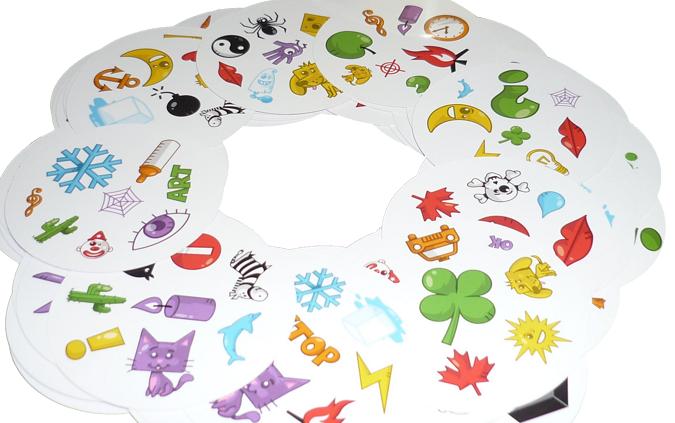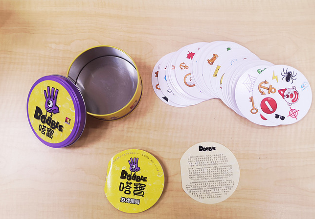 我给孩子买的桌游就是这一款嗒宝桌游。游戏规则非常简单,其实就是找相同:每张卡牌两两之间都有1组相同的图案,需要快速地找出它们,这个非常考验眼力,因为图案大小、方向可能不同,有时候并不那么容易看出来,需要睁大双眼集中精力才行。