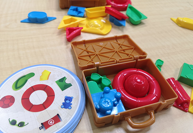 这个桌游非常贴合旅游主题,游戏配件包含旅行箱、旅行必备物品和旅行目的地清单。